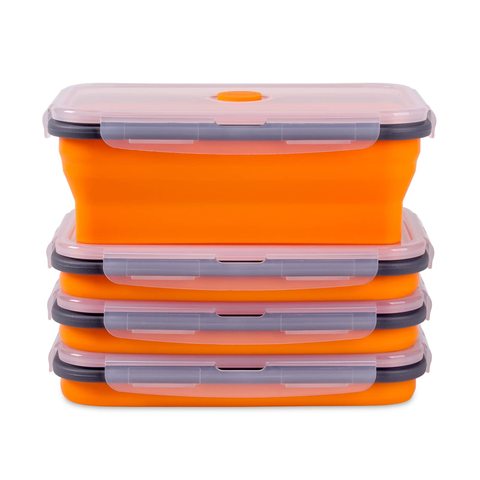 Silicone Leak-Proof Collapsible Eco-Friendly Light Weight Stackable Foldable Fruit Packs Bento Lunch Boxes Plastic Food Storage
