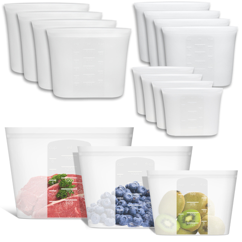 8 Pack Herbruikbare Siliconen Voedselopbergzakken Staan Zip Lock Container Vriezer Magnetron Vaatwasser Veilig