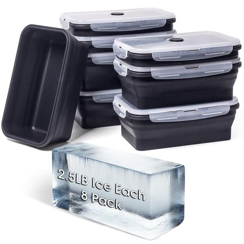 20lb Extra Grote Zwarte Siliconen Ijsblokvorm 8 Pack Opvouwbare Vaatwasser Veilige Container Voor Koud Voedsel Ijs Ijs Gereedschap