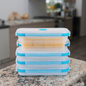 Siliconen Lekvrije Inklapbare Milieuvriendelijke Lichtgewicht Stapelbare Opvouwbare Fruitverpakkingen Bento Lunchboxen Plastic Voedselopslag